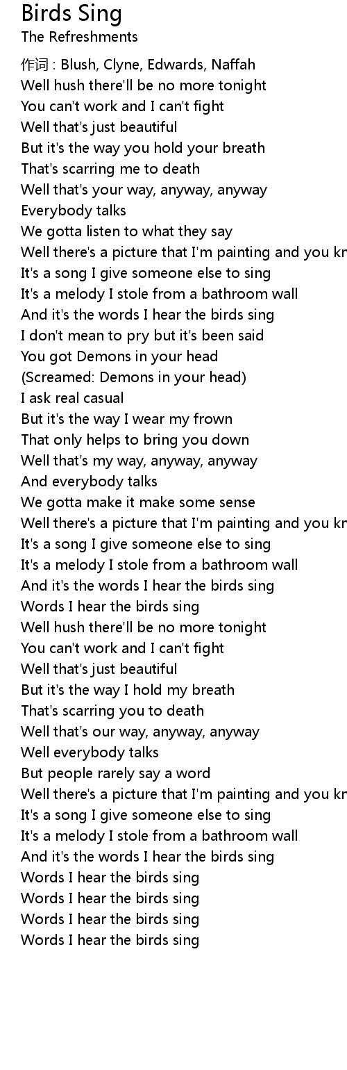 | Words I hear the birds sing |