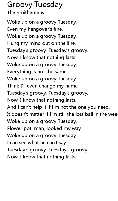 Woke up on a groovy Tuesday, |