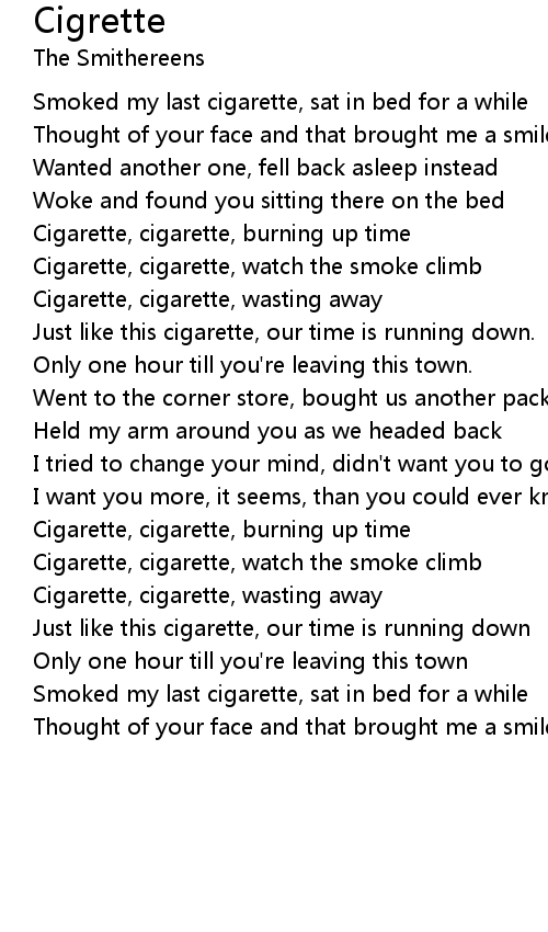 Cigarette, cigarette, wasting away |