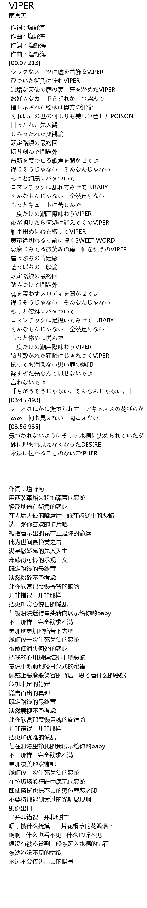 | [02:58.753] | 散り敷かれた狂騒にじゃれつくVIPER |