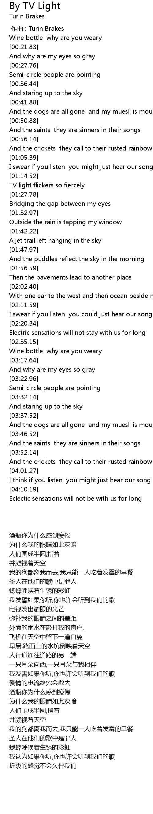 | [00:00.00] | zuò qǔ : Turin Brakes |