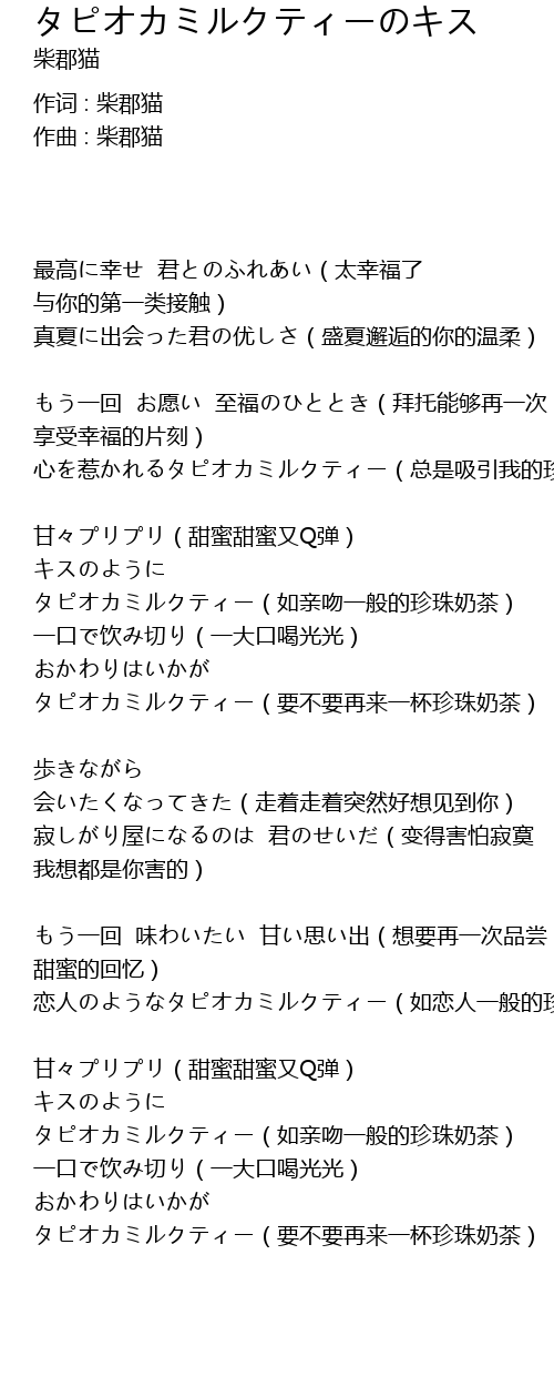 | キスのように タピオカミルクティー(如亲吻一般的珍珠奶茶) | |