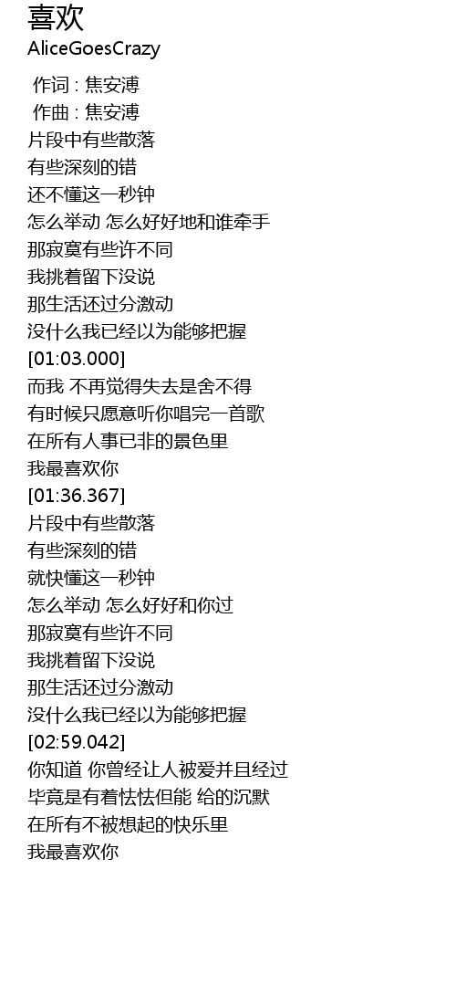 | [03:19.211] | 我最喜欢你 |