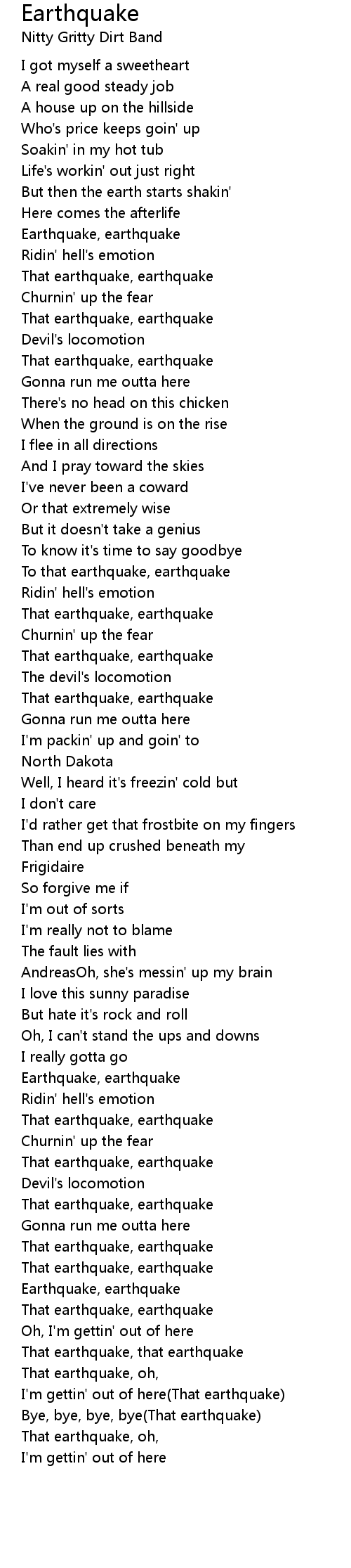 Earthquake, earthquake |