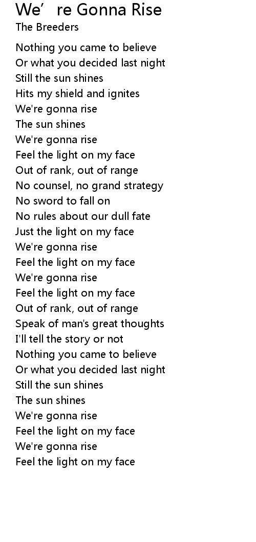 We're gonna rise |