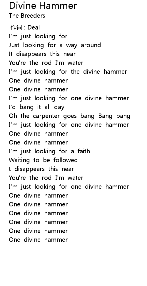 | [00:39.92] | I' m just looking for one divine hammer |