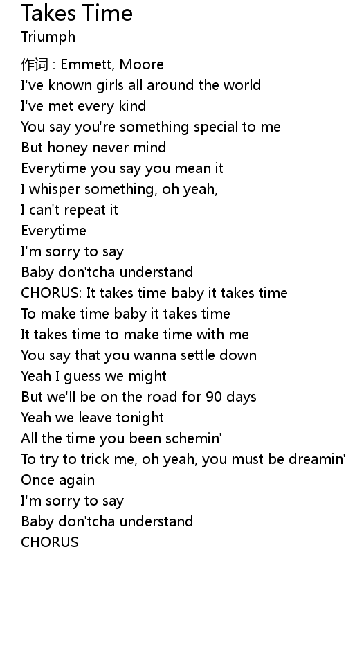 | CHORUS: It takes time baby it takes time | |