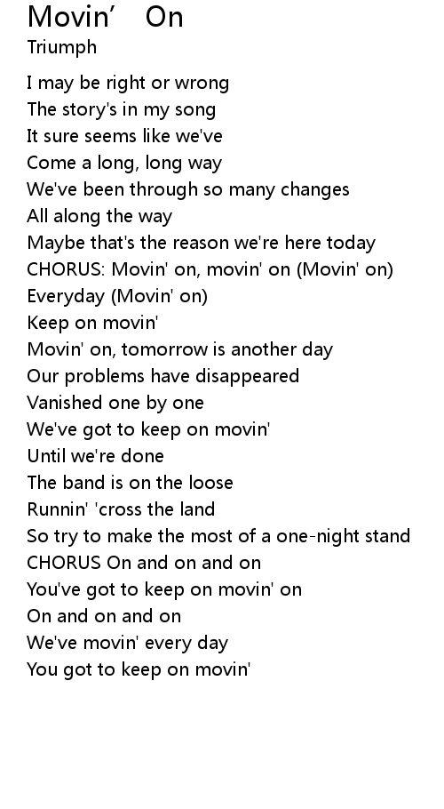 CHORUS: Movin' on, movin' on (Movin' on) |