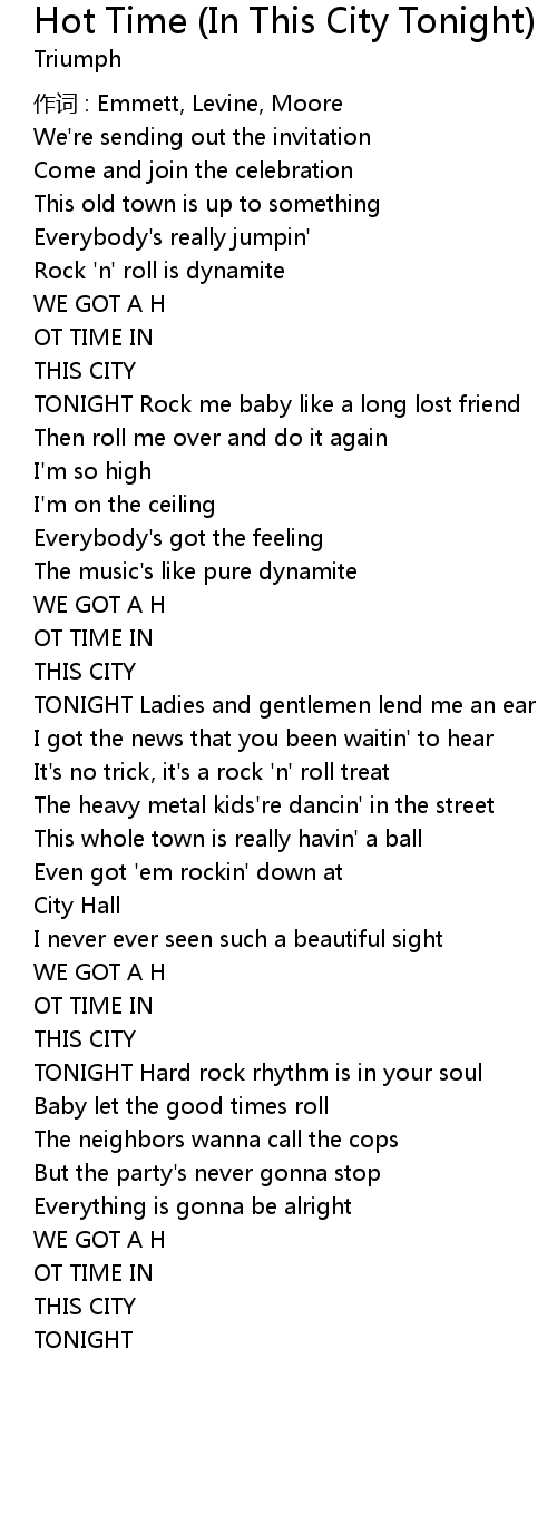 | 歌曲 | Hot Time (In This City Tonight) |
