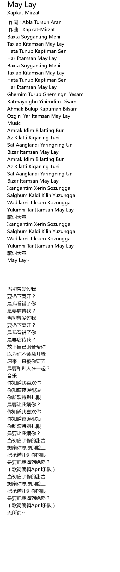 | [00:00.000] | 作词 : Abla Tursun Aran |