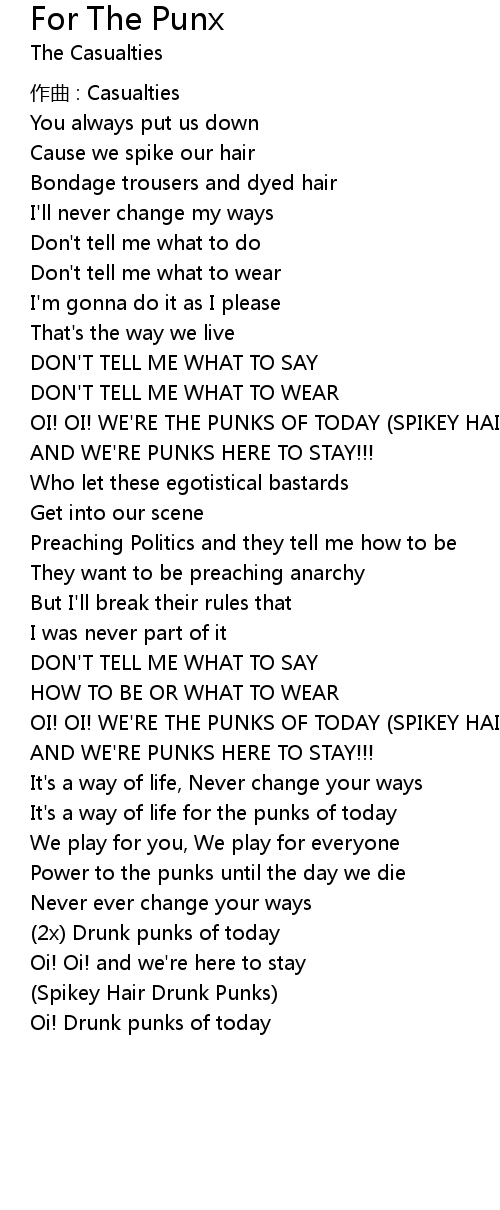 | OI! OI! WE' RE THE PUNKS OF TODAY SPIKEY HAIR DRUNK PUNKS | |