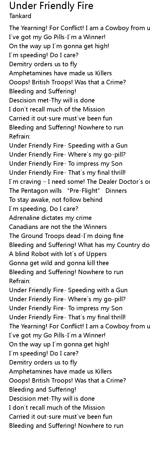 | 歌曲 | Under Friendly Fire |
