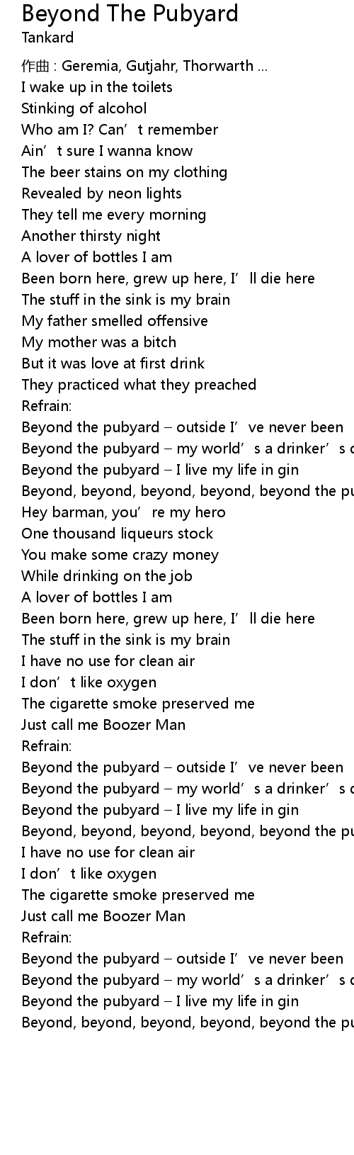 | Beyond, beyond, beyond, beyond, beyond the pubyard |