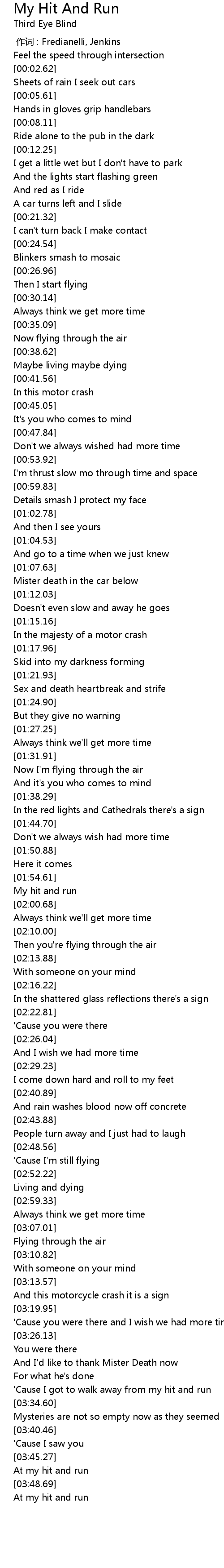 | [01:59.88] | My hit and run |
