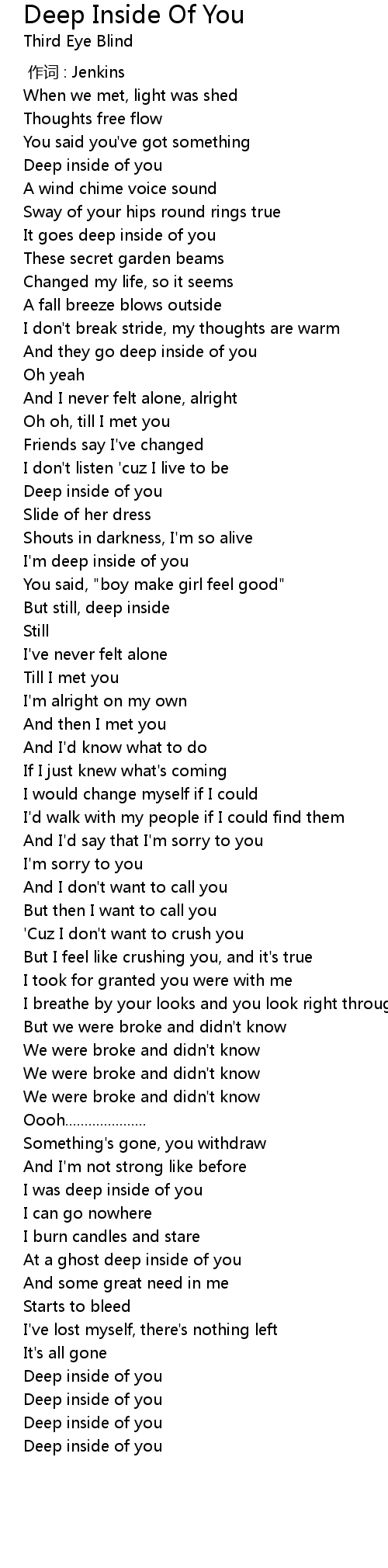 | [01:30.00] | Deep inside of you |