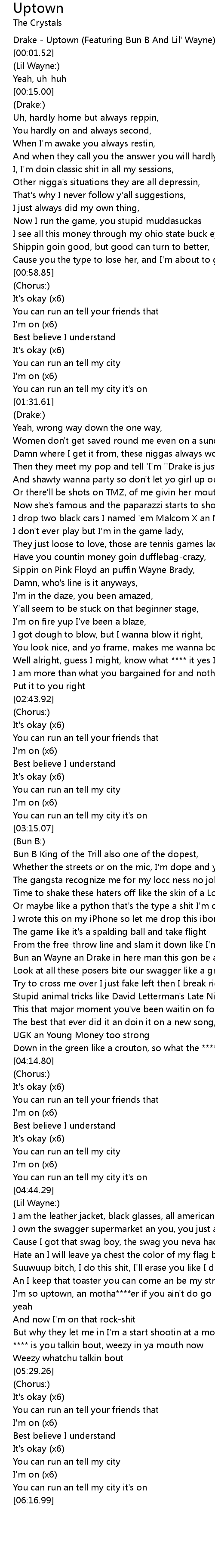 Drake - Uptown (Featuring Bun B And Lil' Wayne) |