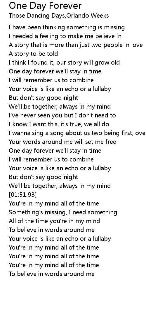 One day forever we'll stay in time |