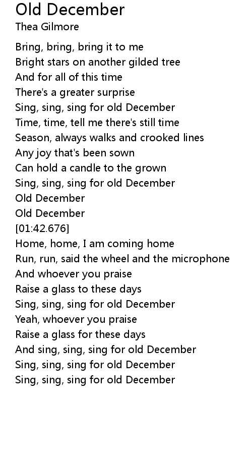 And sing, sing, sing for old December |
