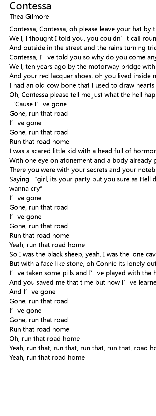 | Contessa, Contessa, oh please leave your hat by the door | |