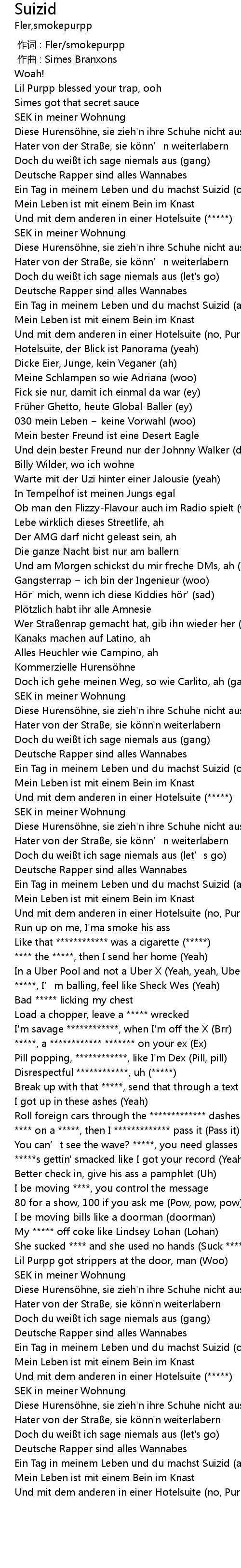 | [01:43.00] | Ein Tag in meinem Leben und du machst Suizid (ooh) |