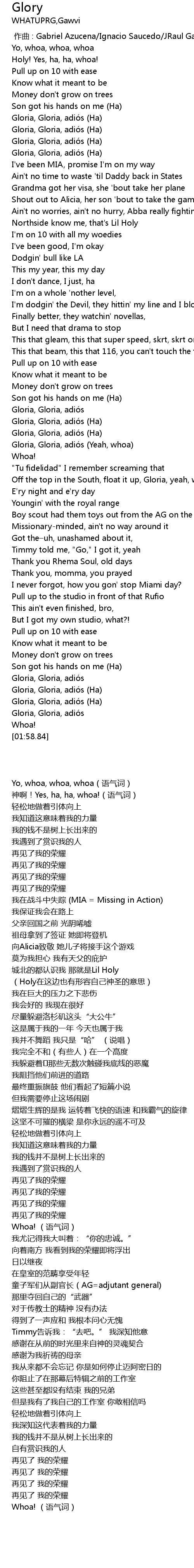 | [01:12.55] | Gloria, Gloria, adiós (Yeah, whoa) |