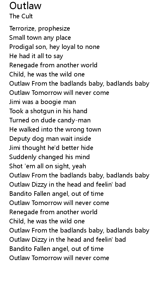 | Outlaw From the badlands baby, badlands baby | |