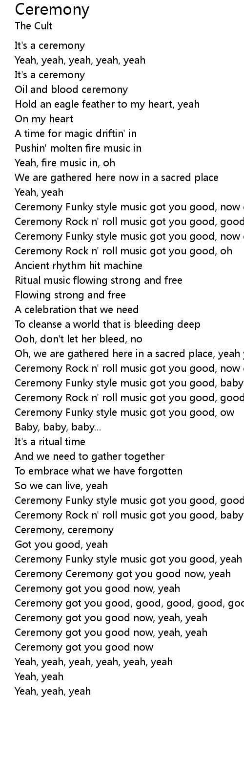 | Ceremony got you good, good, good, good, good, yeah, yeah | |