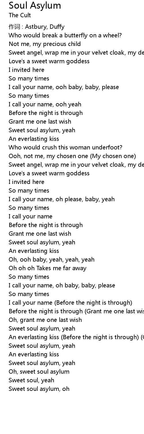 | Sweet soul asylum, yeah | |