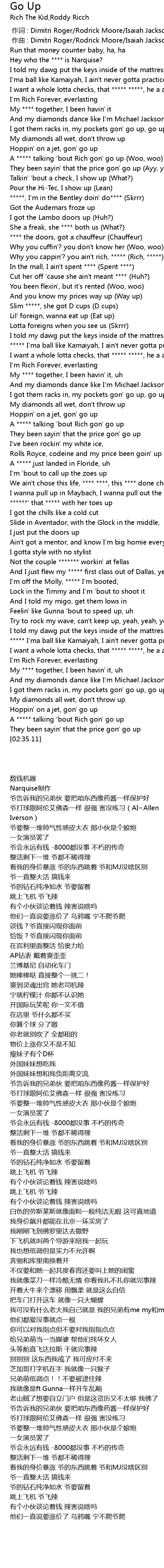 | [02:31.73] | A ***** talking 'bout Rich gon' go up |