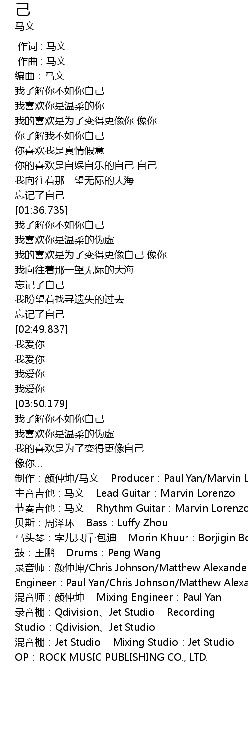 | [00:00.939] | 作曲 : 马文 |