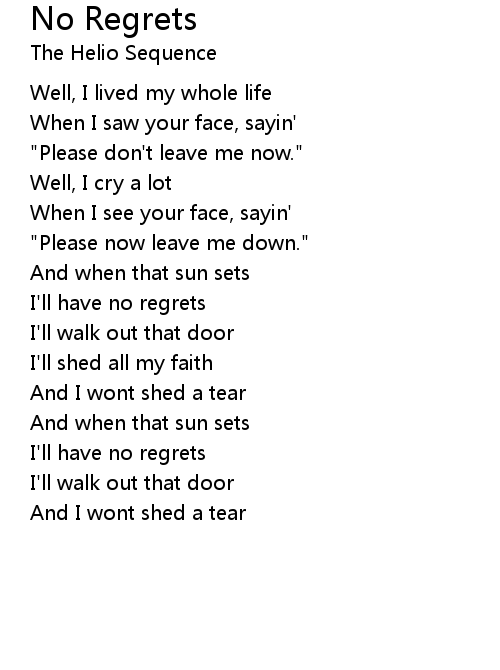 | I'll have no regrets | |