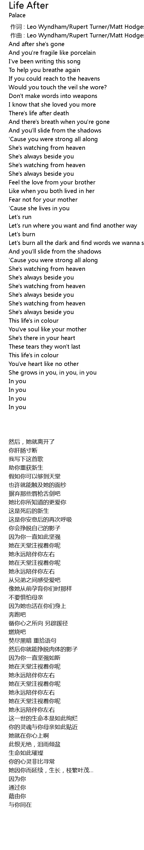 | 歌曲 | Life After |