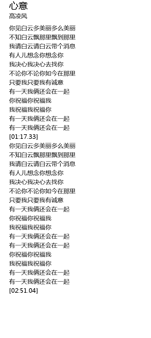 | [01:39.27] | 不知白云飘那里飘到那里 |