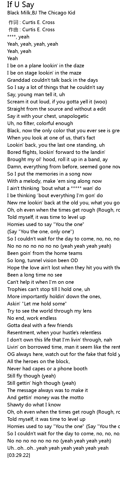 | [01:22.14] | Homies used to say " You the one" |