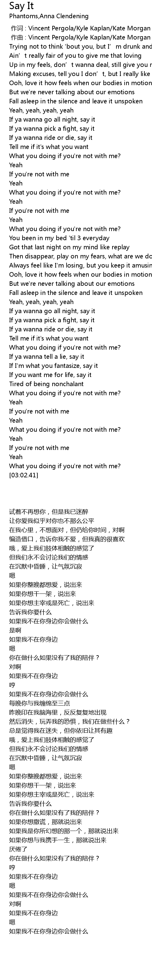 | [02:14.75] | 如果你想撒谎,那就说出来 |