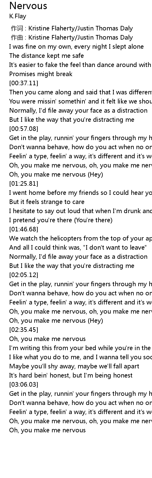 | [02:23.35] | Oh, you make me nervous, oh, you make me nervous (Hey) |