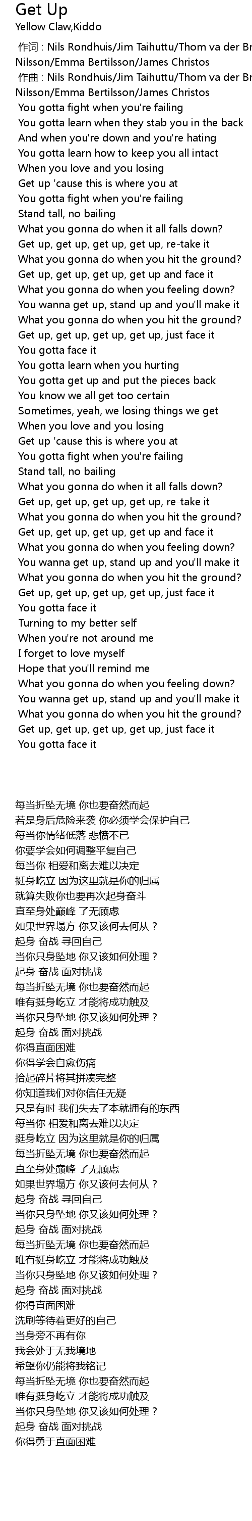 | [00:36.008] | Get up, get up, get up, get up and face it |