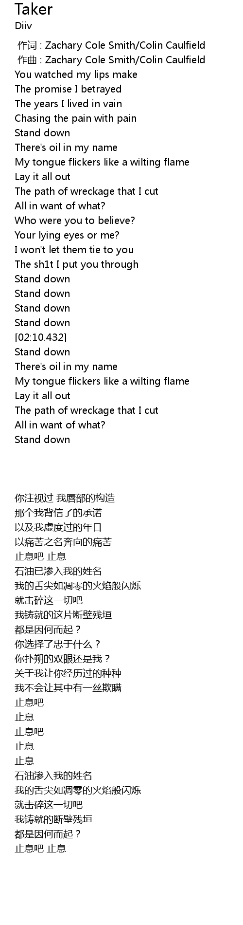 | [00:01.000] | 作曲 : Zachary Cole Smith/Colin Caulfield |