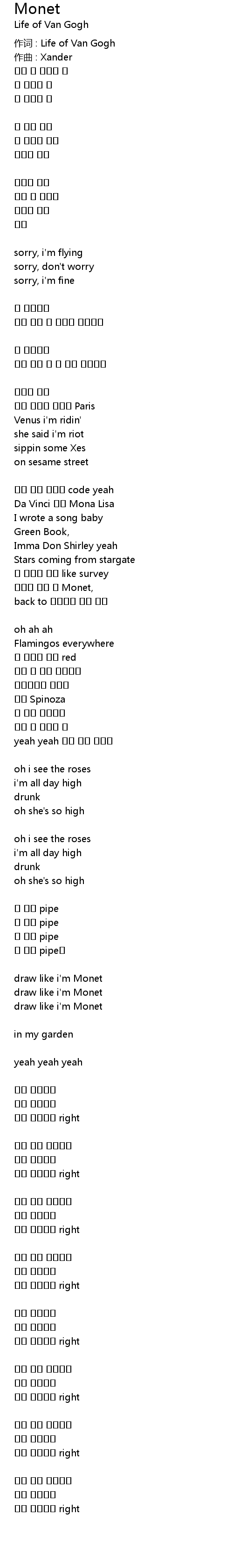 | 歌曲 | Monet |