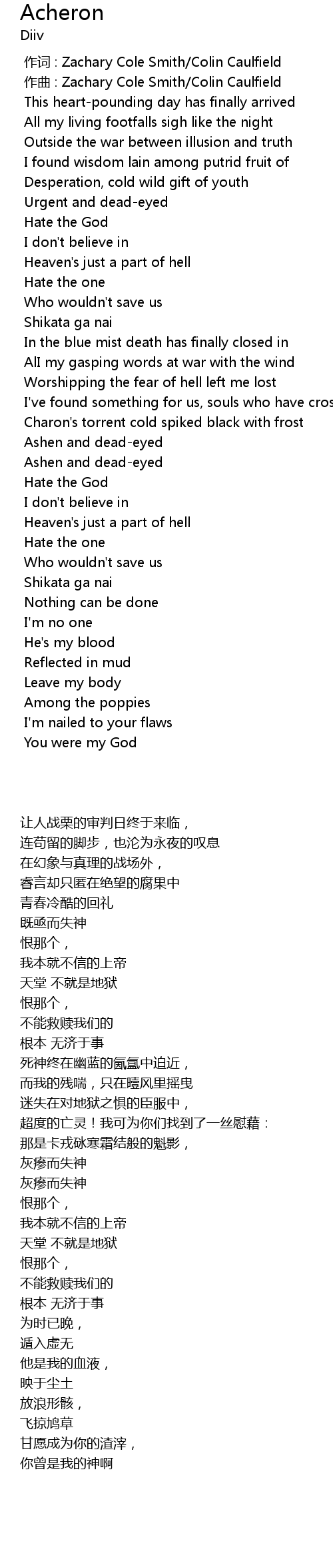 | [03:08.145] | Hate the God |