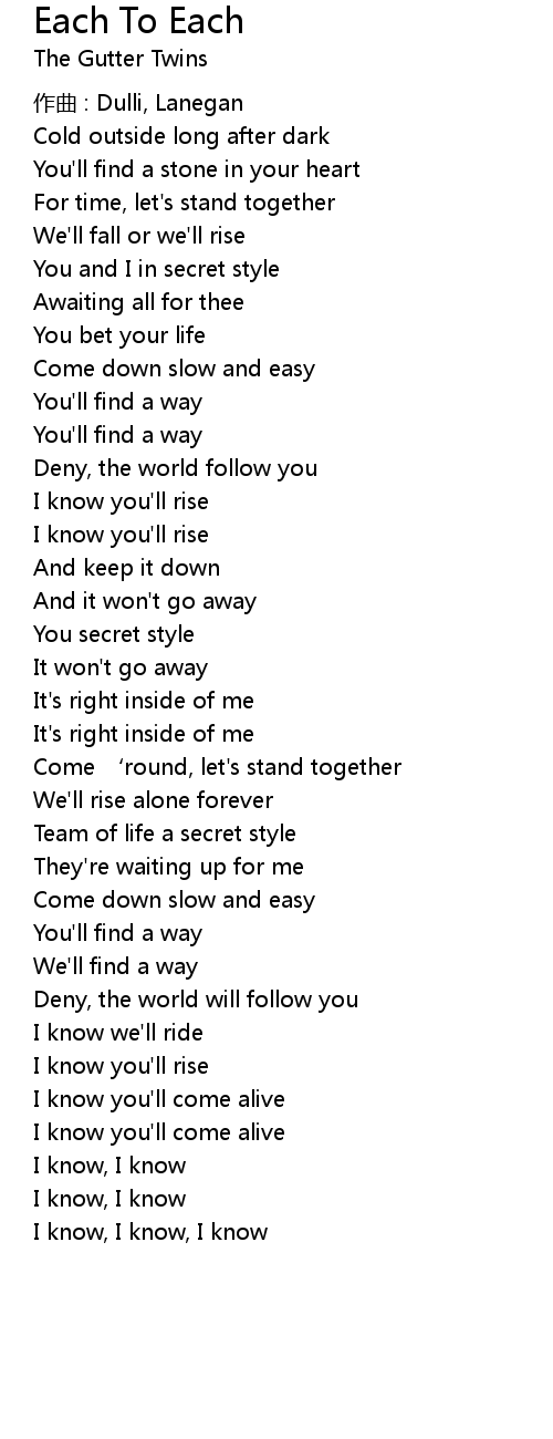 | 歌曲 | Each To Each |