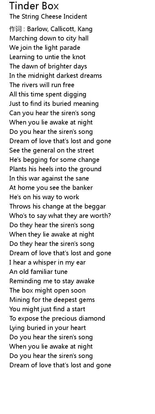 | 歌曲 | Tinder Box |
