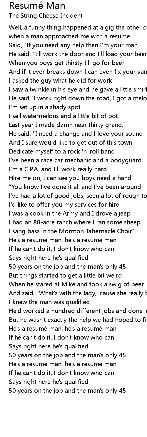 | He' s a resume man, he' s a resume man | |