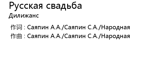 | 歌曲 | Русская свадьба |