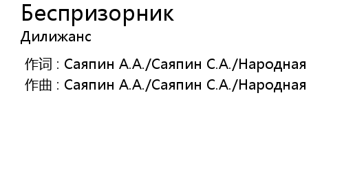| [00:00.00-1] | 作曲 : Саяпин А.А./Саяпин С.А./Народная |