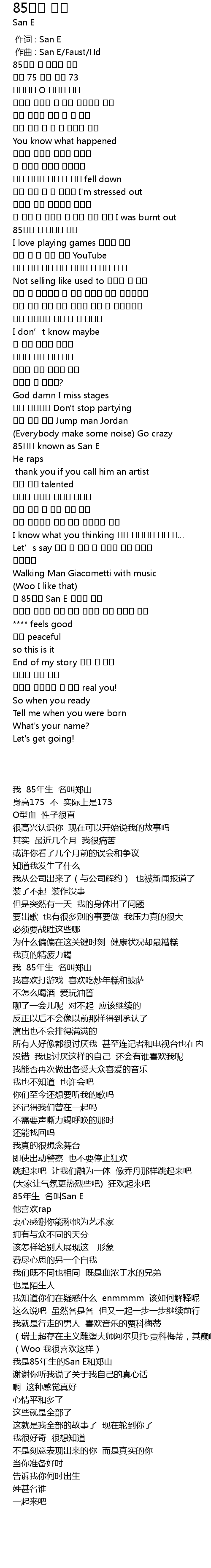 | [02:20.018] | 난 85년생 San E 그리고 정산 |