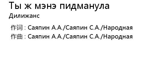 | [00:00.00-1] | 作曲 : Саяпин А.А./Саяпин С.А./Народная |