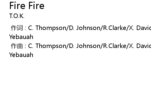 | [00:00.000] | zuo qu : C. Thompson D. Johnson R. Clarke X. Davidson a. McCalla P. Yebauah |