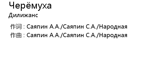 | [00:00.00-1] | 作曲 : Саяпин А.А./Саяпин С.А./Народная |