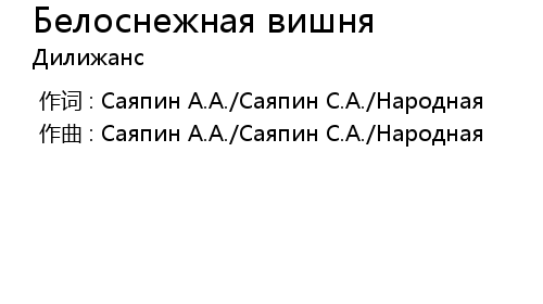 | [00:00.00-1] | 作曲 : Саяпин А.А./Саяпин С.А./Народная |